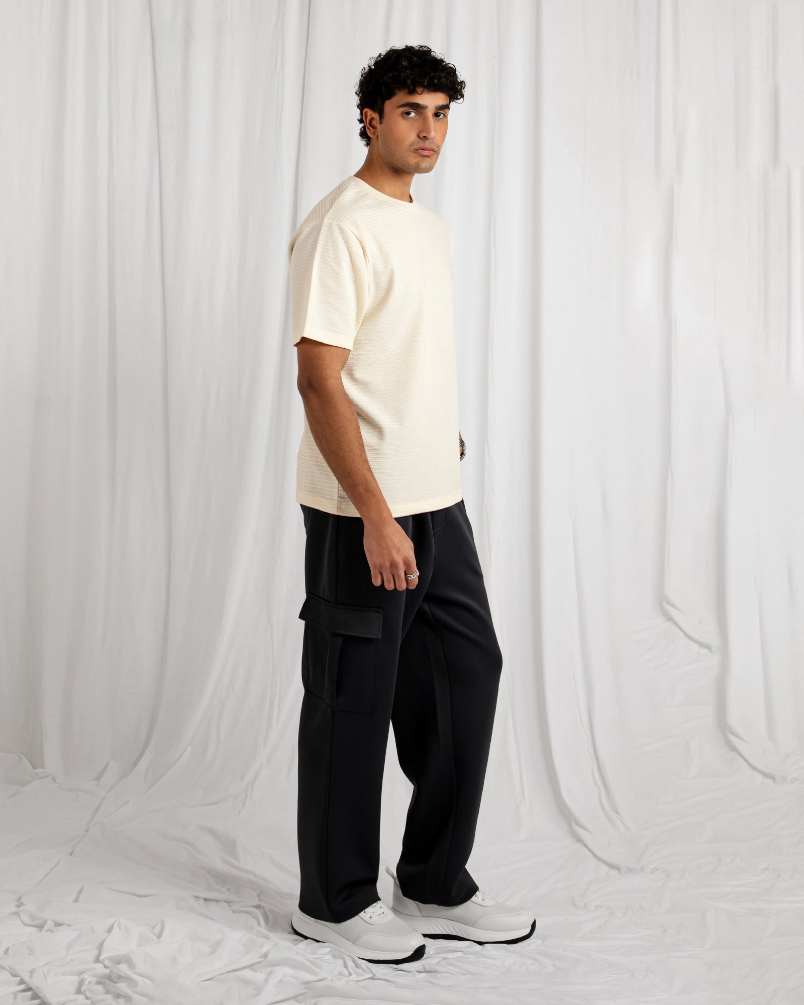 Men’s loose-fit short-sleeve T-shirt crafted from textured fabric. Features a relaxed silhouette, breathable comfort, and subtle surface detailing, delivering a modern casual look with easy movement and everyday versatility.