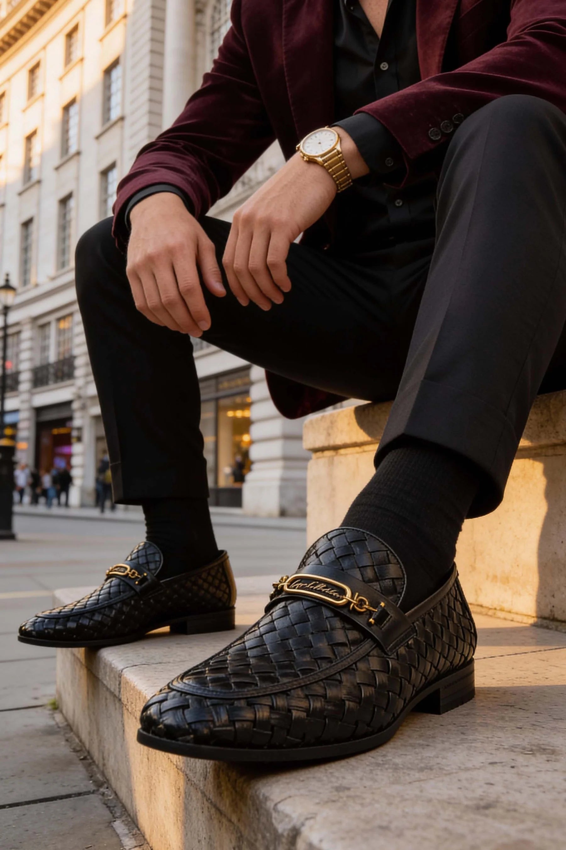 - Refined black upper with a classic finish