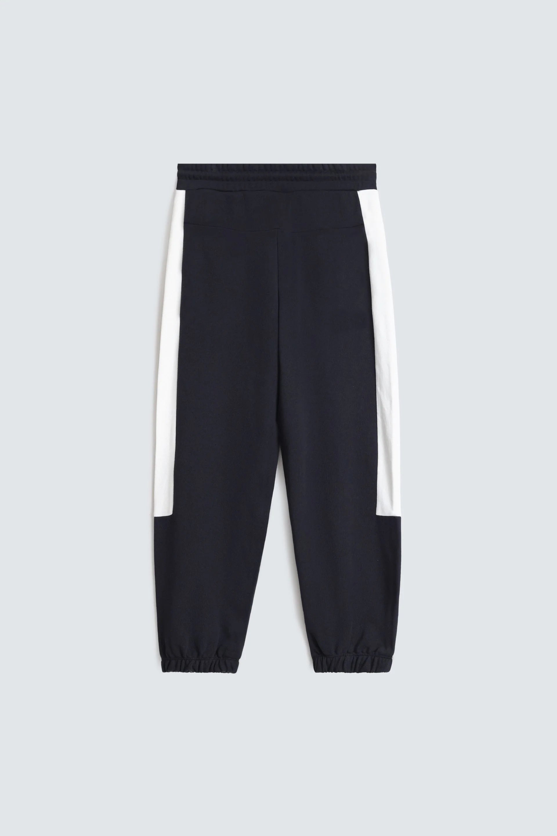 Elevate your athletic wardrobe with these sophisticated color-block jogger trousers. Featuring a secure elasticated waistband with adjustable drawcord, practical front pockets, and contemporary design elements that seamlessly transition from gym to casual settings.