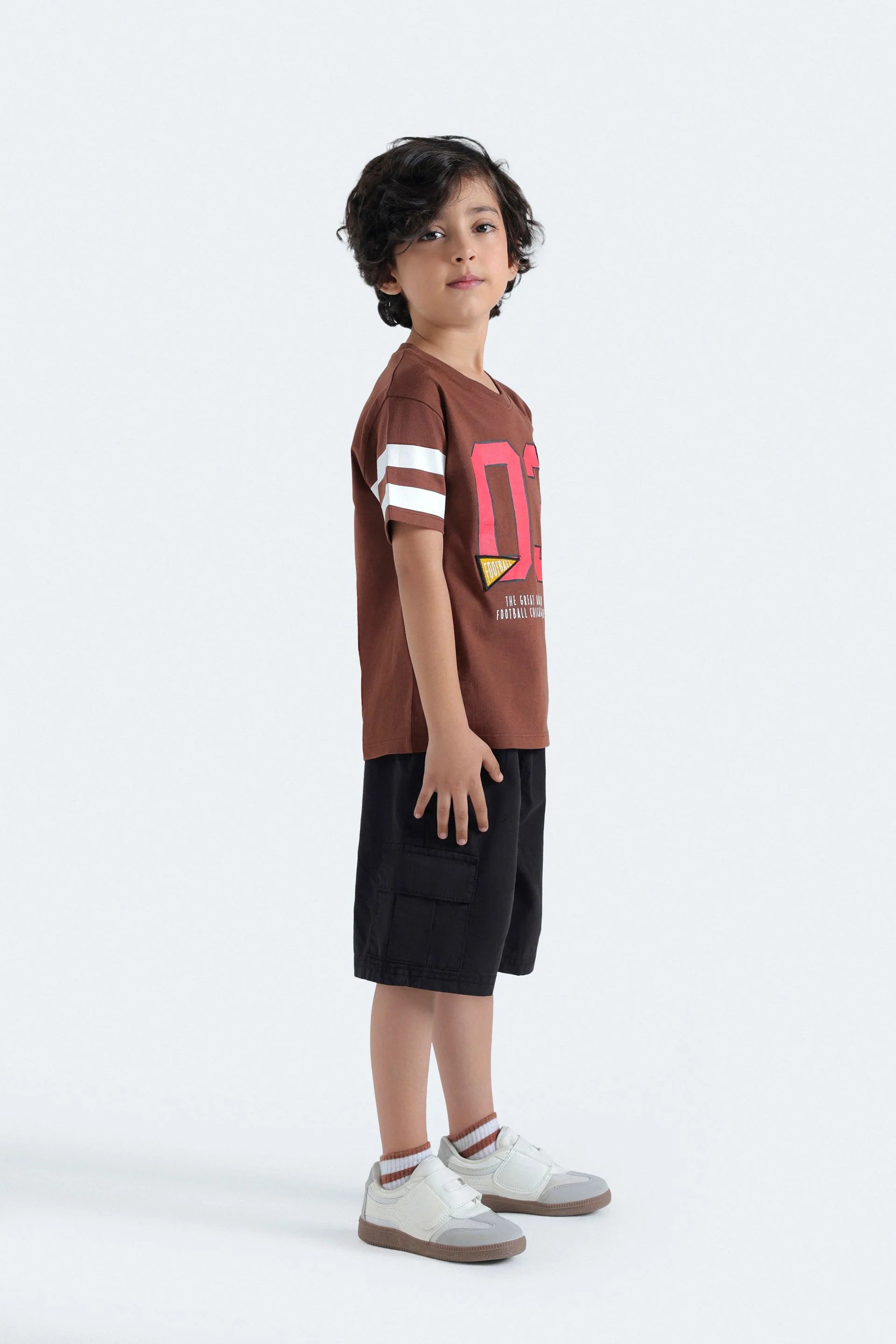 Playful varsity vibes for young athletes! This color-block tee features a cool embroidered patch, comfy half sleeves, and a flattering V-neck cut. Perfect for casual hangouts or sporty adventures, it's the go-to piece every kid needs in their wardrobe.