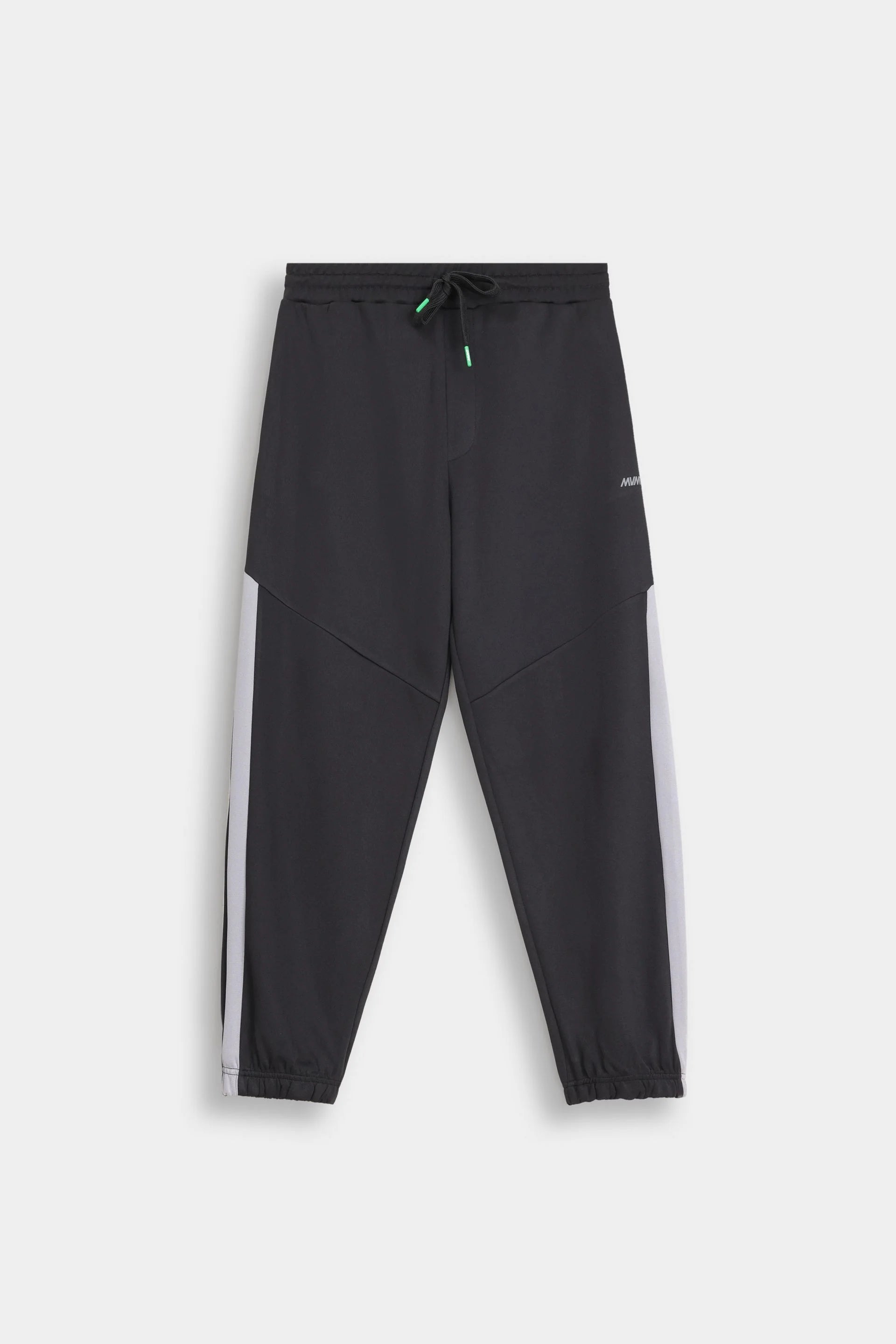 Elevate your athletic wardrobe with these sophisticated color block trousers, featuring refined cut and sew detailing. The elasticated waistband with adjustable drawcord ensures a customized fit, while the functional back patch pocket adds practical elegance to your active lifestyle.